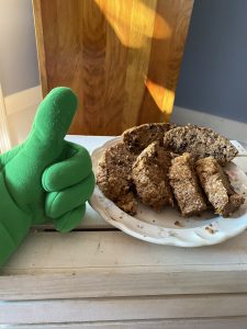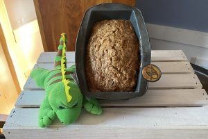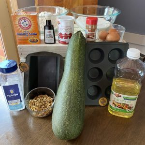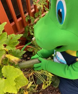 Lil’ Iguana noticed a big zucchini in the garden today. He has a party coming up and wanted to use the fresh produce to bake something special that everyone can enjoy.