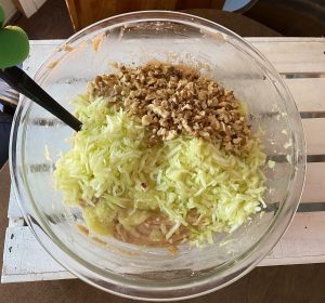 Fold in shredded zucchini, pecans, and additional mix-ins.