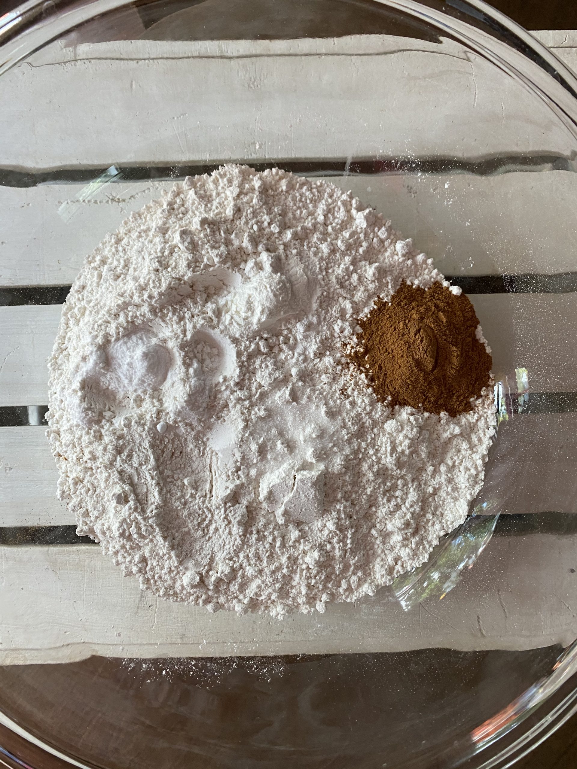 In medium bowl, combine dry ingredients: almond flour, salt, baking soda, baking powder, and cinnamon.