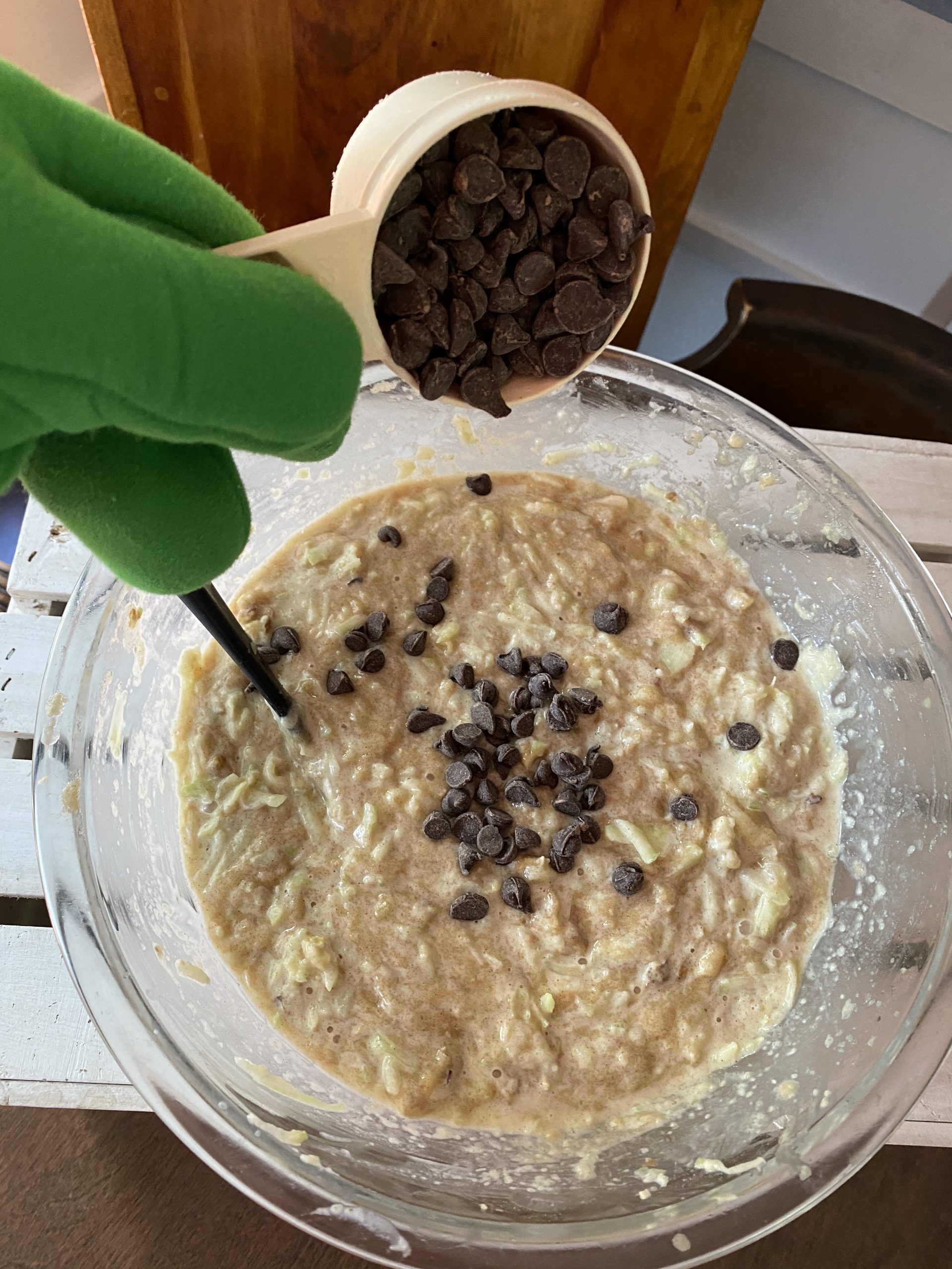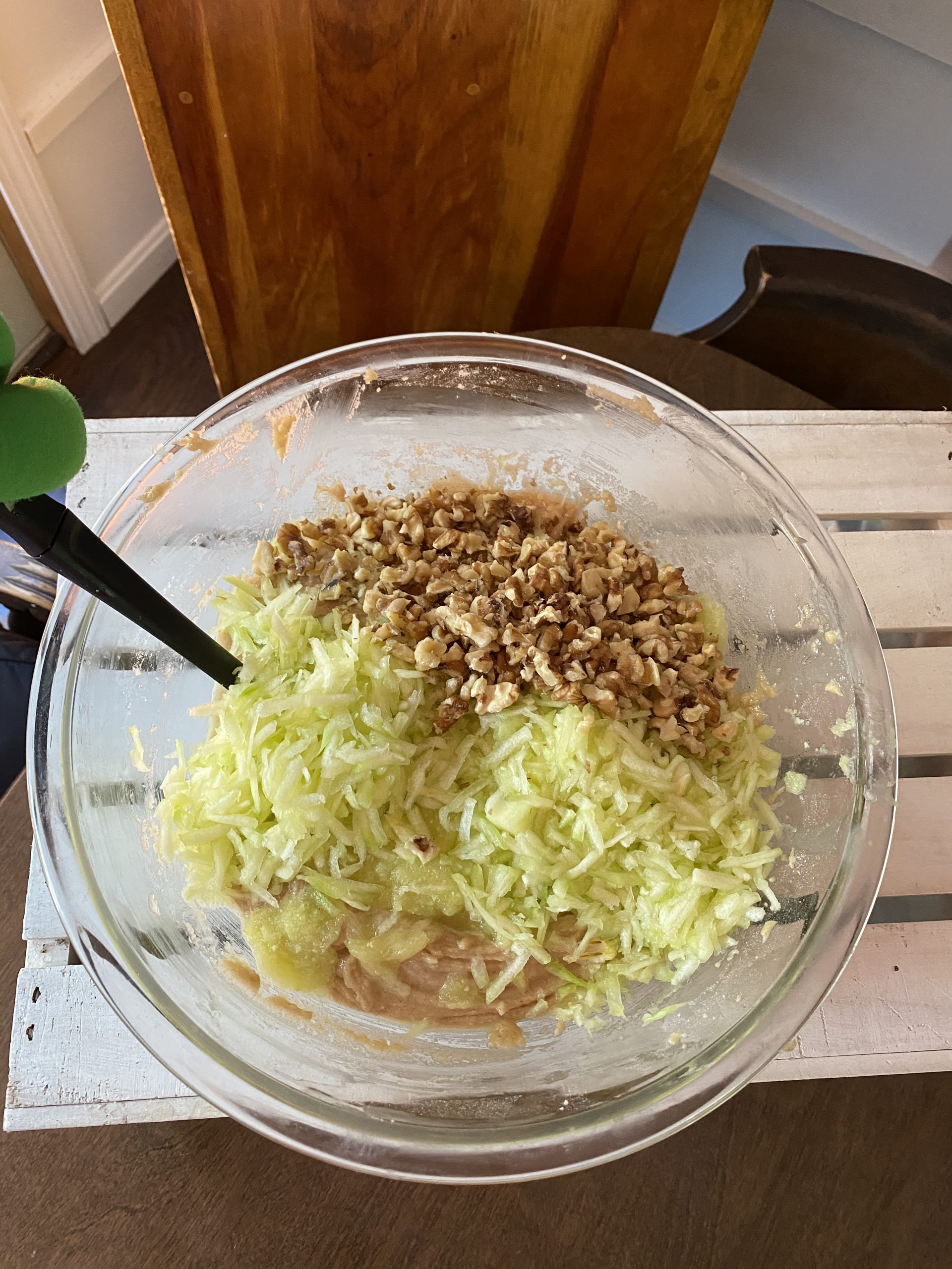 Fold in shredded zucchini, pecans, and additional mix-ins.
