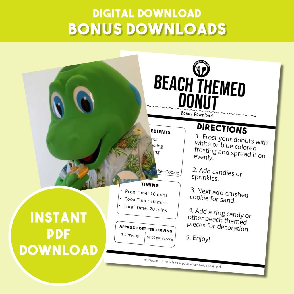 Beach Themed Donut PREP TIME: 10 minutes COOK TIME: 40 minutes TOTAL TIME: 50 minutes YIELD: 12 servings APPROX COST PER SERVING: $1 5/5 Jump to Recipe Printable Facebook Twitter Pinterest Email Lil’ Iguana loves a sweet treat and spending the day at the beach. With this fun a simple treat, he can have